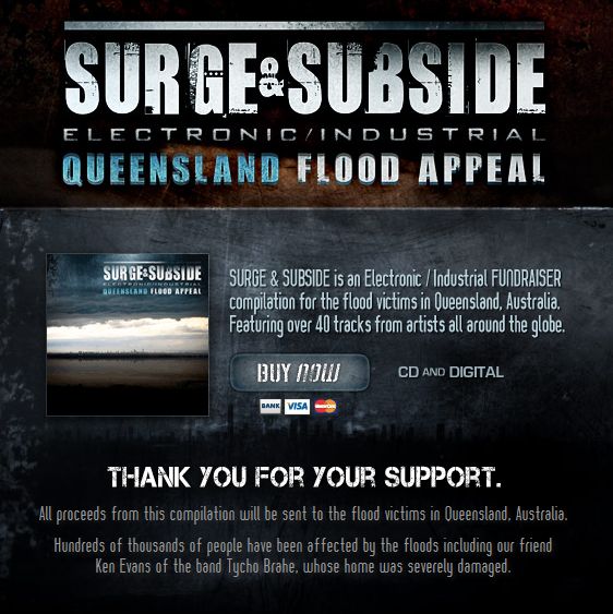 Surge & Subside: Queensland Flood Appeal is the first various artists release for Aphotic Audio, showcasing some of the best electronic, industrial & metal artists in the world today. All proceeds from CD & digital sales will go to the victims of these massively devastating floods.